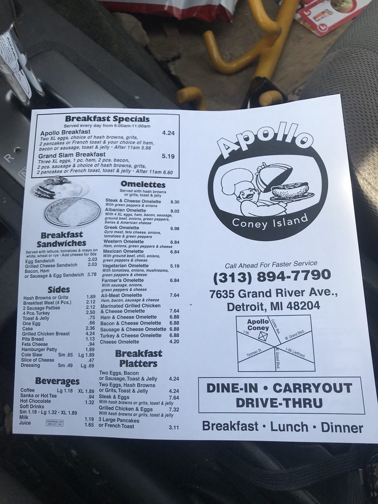 Welcome to Apollo Coney Island, an exciting culinary destination nestled in the heart of Detroit on Grand River Ave. This charming eatery specializes in American cuisine, particularly renowned for its flavorful chicken wings and delightful breakfast offerings. The menu boasts a variety of choices, from hearty omelets like the Albanian and Greek versions to tempting appetizers such as shrimp, cheese sticks, and crispy onion rings.